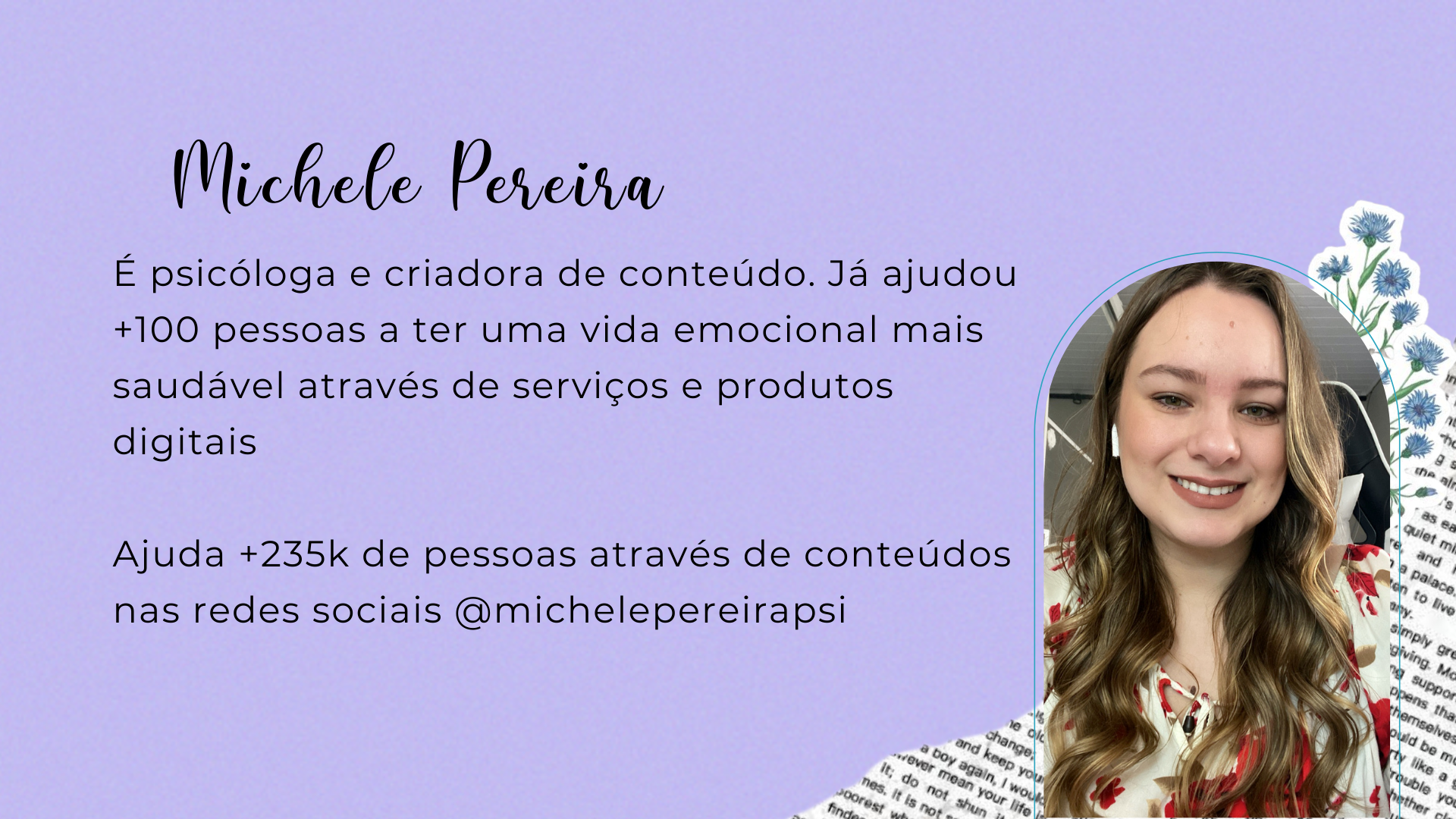 VOCÊ VAI APRENDER TUDO O QUE PRECISA PARA TER MAIS AUTOCONHECIMENTO, APRENDER SOBRE AS PRÓPRIAS EMOÇÕES E PENSAMENTOS QUE TE INCOMODAM, LIDAR COM A INSEGURANÇA, MELHORAR A AUTOESTIMA E A SE COMUNICAR DE UMA FORMA MAIS CLARA E MAIS FÁCIL DE SER COMPREENDIDA!